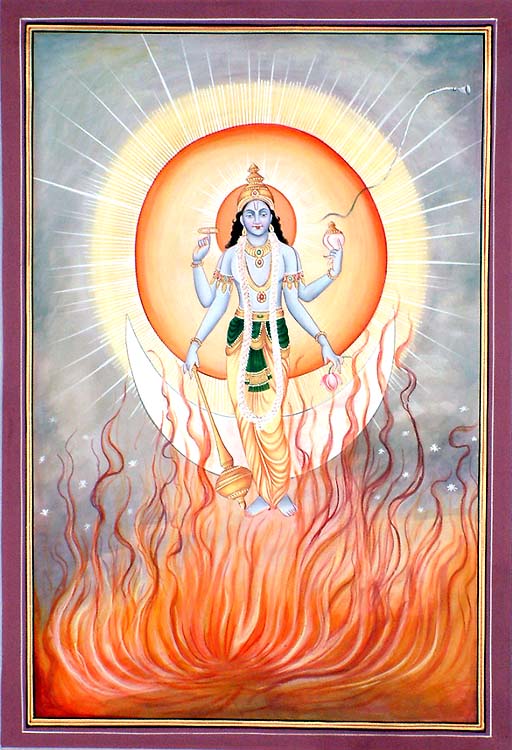 Relative to the Yoga of Devotion or Bhakti Yoga, the first and main images used in worship were that of the deity in the Sun disc, Surya-Narayana. This is the background of the ancient Vaikhanasa tradition of India, which is still followed in the famous temple of Tirupati in South India.